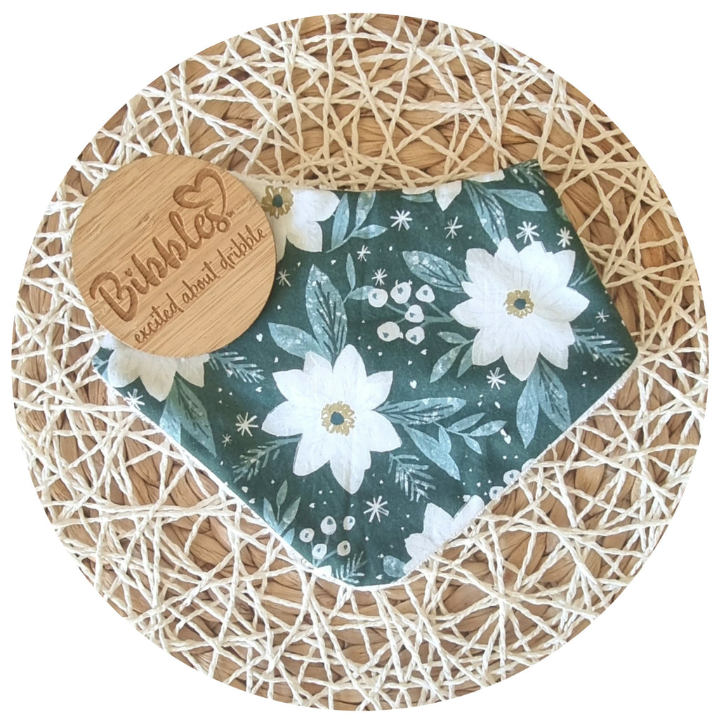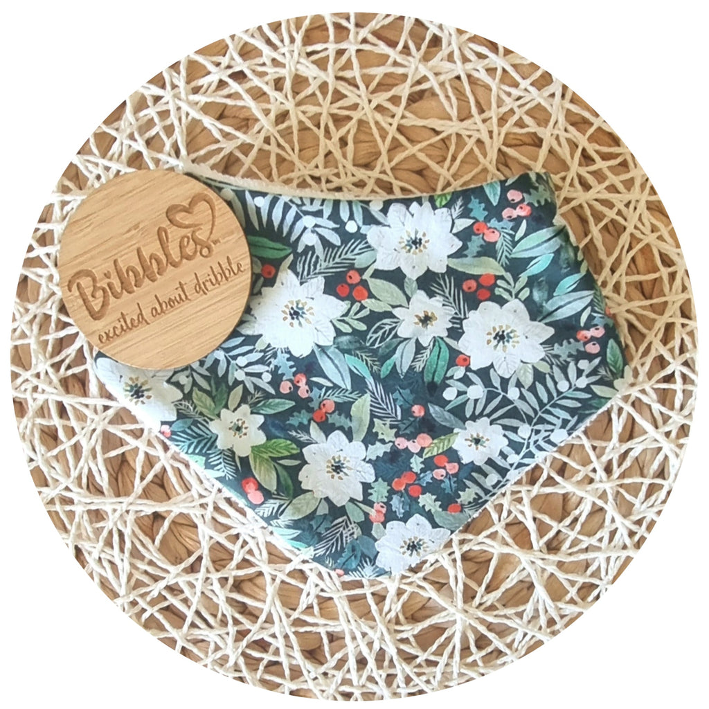 Bibbles are made with 100% cotton and backed with absorbent cotton toweling to keep the neck and clothes dry from dribble. Each bib has 2 snaps to fasten to your desired fit.